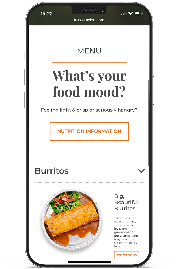I led the redesign for Costa Vida’s web and mobile presence, which included lifestyle and food photography, and an improved user experience. The goal was to communicate the freshness and authenticity of Costa Vida’s ingredients and quality cuisine.